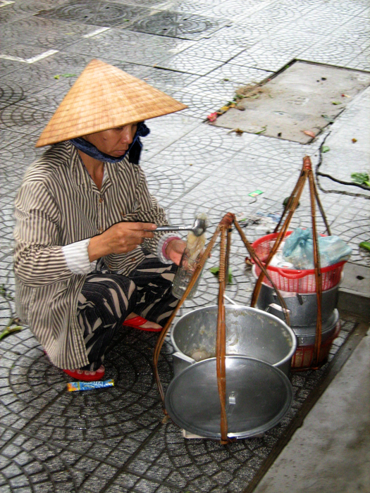 Mấy ngày trước đọc ” Những gánh quà sáng xứ Huê’ ” của Huỳnh sưu tầm và gửi, thấy tác giả viết về những hàng quà của Huế thật hay và linh động ,tác giả đã tả tỉ mỉ từng chi tiết một làm mình như thấy lại được cả một thời tuổi nhỏ của mình với những hàng quà bánh thân quen. Nói là để viết cám ơn Huỳnh mà rồi cứ dây dưa cho tới bây chừ mới viết được , cám ơn Huỳnh đã gửi bài đọc hay. Ng như thấy lại được những gánh hàng ăn ngồi ở đầu đường Thuận An( từ trên khách sạn Hương Giang đi về phía biển , qua khỏi Đập Đá là đó )cũng là phía ngoài con ngõ đi vô nhà của ông bà Nội của Ng , có đủ các thứ : bún bò , cơm hến , xôi đậu đỏ , xôi bắp , cháo đậu xanh , khoai lang luột , khoai từ , khoai tía , từ khoảng 10 giờ rưỡi sáng thì có thêm một gánh cháo thịt và chả tôm cua…Ng còn nhớ gánh cháo đặc biệt này mỗi ngày đều mở hàng trễ vì thấy khi mô ôn mệ của Ng muốn ăn cháo chả tôm cua thì buổi sáng sớm hai người phải ăn lót dạ trước một chén cháo trắng nhỏ để chờ đến hơn 10 giờ rưỡi rồi mấy o người làm mới xách gà men đi ra trước đường mua cháo chả tôm cua. Hồi đó mỗi buổi sáng trước khi đi học Ng thường được ăn cháo đậu xanh nấu hơi đặc sệt , có khi ăn với cá kho khô , có khi ăn với mấy cục đường đen , có khi buổi tối trước mấy o nấu thêm cơm cho nhiều để sáng mai lấy cơm nguội chiên với tóp mở và tỏi , chỉ đơn giản như vậy thôi mà ăn cảm thấy rất ngon. Những hàng quà bánh thì chỉ được ăn vào dịp cuối tuần vì như rứa mới có nhiều thì giờ , mấy o, chú của Ng cũng được nghĩ ở nhà , kêu một gánh cơm hến hay gánh bún bò vô trong sân nhà rồi mọi người cùng ăn. Bánh canh Nam Phổ ở khu vực Ng ở không có bán buổi sáng mà chỉ có bán vào buổi chiều , cở bắt đầu từ 2 giờ chiều là có rất nhiều đợt , mấy o bán bánh canh từ dưới Nam Phổ gánh lên , những người đi sớm thì gánh qua bán ở chợ Đông Ba hay những vùng khác còn mấy o lên trể cở 3 hay 4 giờ chiều thì bán quanh trong vùng Đập Đá , Ng nhớ giờ vì hay được ăn bánh canh Nam Phổ vào buổi chiều sau giấc ngủ trưa. Thời đó những o bán hàng rong , bánh canh, bún bò , cơm hến, đậu hủ…tuy là đôi gióng gánh kĩu kịt trên vai , đong đưa theo nhịp bước nhưng ai ai cũng mặc áo dài , có lúc còn có áo dài cổ cao đến hơn 5 cm , mỗi khi nghe ai kêu mua hàng , nhìn ngoái lại chắc cũng khó khăn , những hình ảnh đó thật dễ thương. Ng rất thích ăn bánh canh Nam Phổ và chỉ biết ăn loại bánh canh này , mấy o bán hàng múc ra trong những cái tô bằng sành nhỏ xíu và tô hơi trẹt trẹt ,bánh canh với nước hơi sền sệt , những miếng thịt xắt nhỏ và những miếng gạch cua tôm cũng nho nhỏ nổi trên mặt với màu đỏ gạch, khói bốc nghi ngút , vừa thổi vừa ăn , ăn xong một tô còn muốn ăn thêm. Lớn lên khi vô Saigon ở Ng vẫn nhớ đến bánh canh Nam Phổ và không ăn được bánh canh của người Nam , mấy em của Ng được sinh ra ở Saigon nên chúng nó rất thích bánh canh kiểu miền nam ,bây chừ mỗi khi Ng qua thăm nhà ở San José mấy em của Ng nấu bánh canh để ăn cùng nhau là chúng nó nấu thêm cho Ng món bún bò Huế vì Ng không ăn bánh canh. Những lần trước Ng về Huế Ng đều hỏi mấy o của Ng mua bánh canh Nam Phổ về ăn nhưng mấy o của Ng nói bây chừ không còn , không biết ở mô có bán , chắc tại mấy o của Ng cũng đã già không đi ăn nhà hàng nữa nên không biết được. Thấy Hoằng viết là Mai để bụng để tháng 3 tới về VN mà ăn Ng mừng quá , rứa là tháng 3 năm tới Hoằng nhớ dẫn cho Mai và Ng đi ăn bánh canh Nam Phổ đó nghe , nhớ mà giữ lời đó. Sáng chủ nhật các bạn đọc như ri chắc cũng mệt rồi hí , Ng ngừng đây . Mong an lành cho các bạn và gia đình.