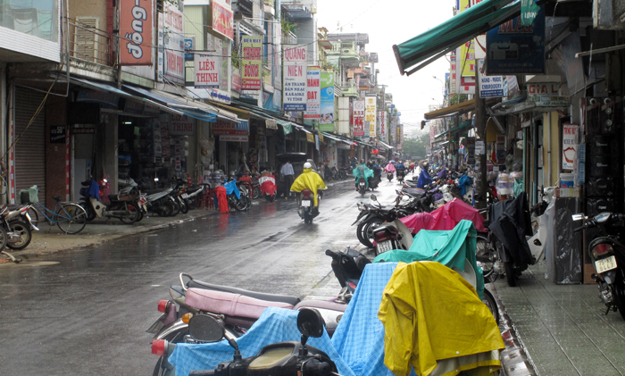 Nhà tôi nguyên ở đường Cửa Đông Ba (khu Bến Tượng), tên thuở Pháp thuộc là rue Mirador Neuf (đường Vọng Lâu số 9) và tôi đã học trường Khải Định tức Quốc Học bên Hữu ngạn sông Hương ( tính từ trên nguồn đổ xuống theo kiểu Tây, còn theo kiểu ta thì tính ngược lại vì tính từ cửa biển đi ngược lên)…. đằng đẳng bảy năm trời. Do đó, con đường Ngã Giữa (hay đường Gia Long, hay Phan Bội Châu) là con đường tôi đã đi qua khiến mòn không biết bao nhiêu là… guốc, săng đan và lốp xe đạp. Cảnh trí và các nhân vật trên con đường này vô tình đã chui tọt nằm êm ả trong góc tư của ký ức của tôi.