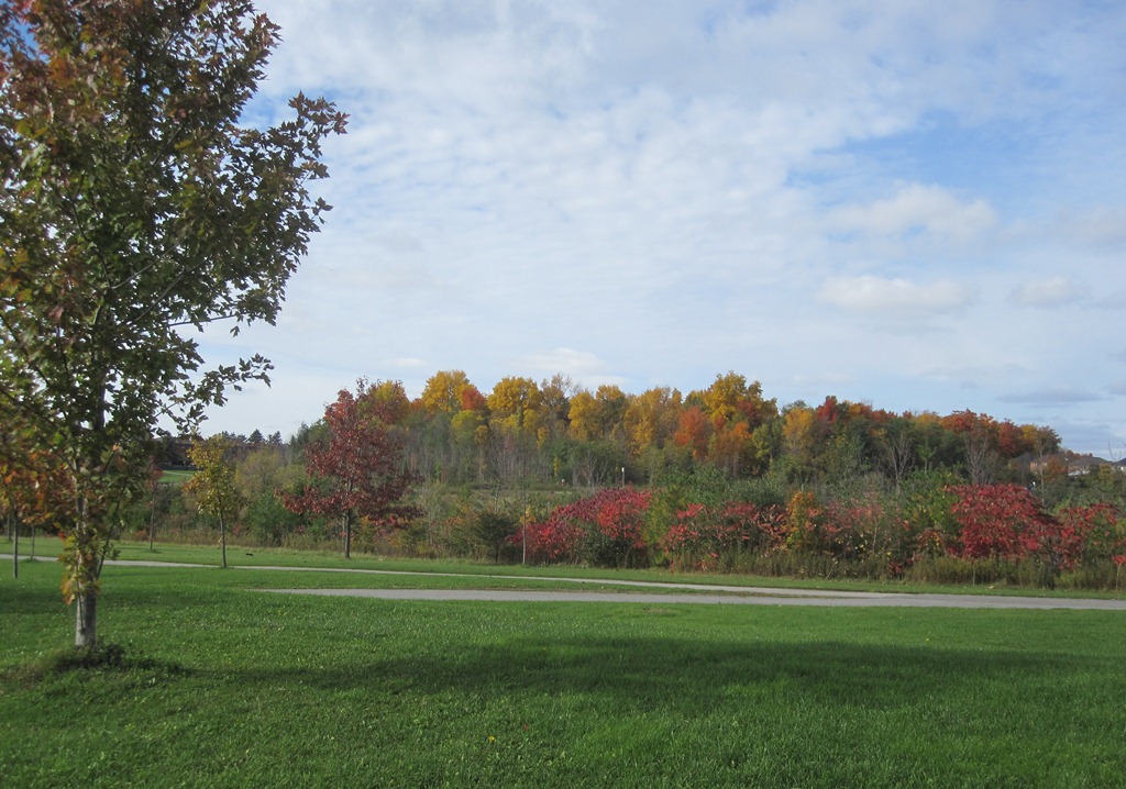 Tuy lá trên cây còn màu xanh rất nhiều nhưng con đường nhỏ thì ngập đầy xác lá( cũng là biểu tượng của mùa Thu phải không ).