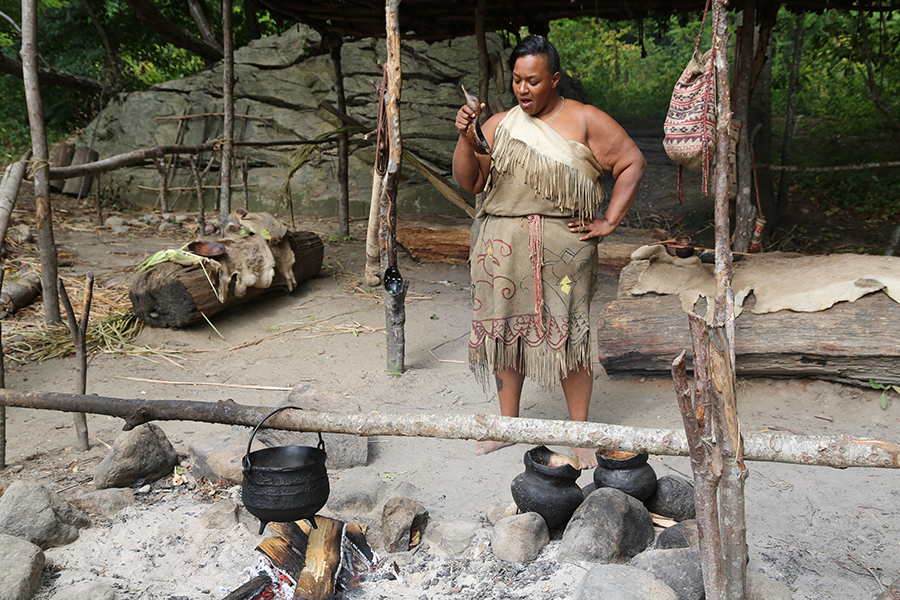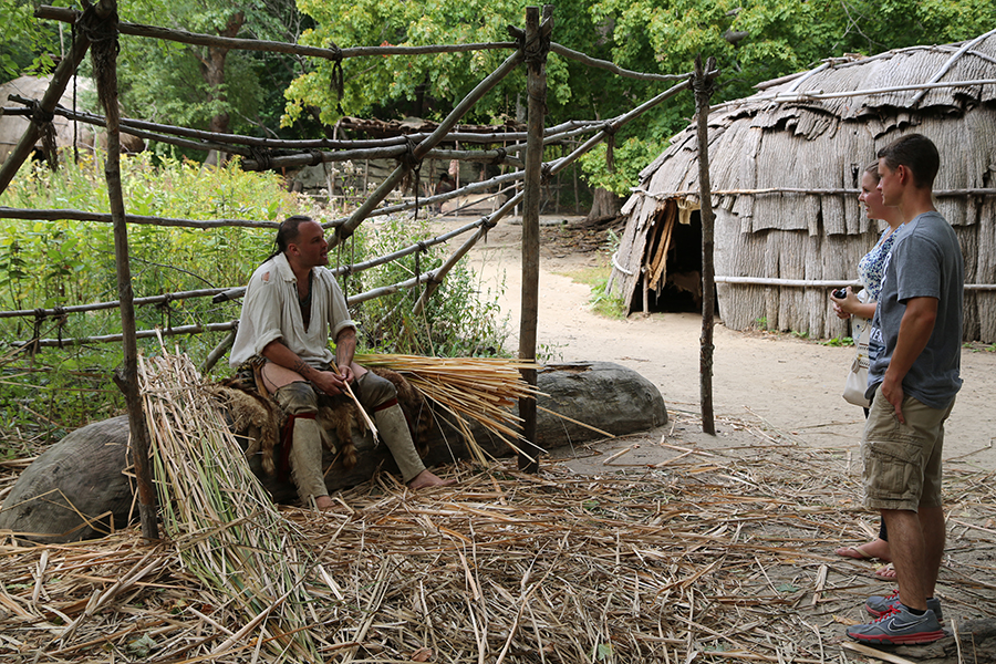 (2) “Plimoth Plantation tells the story of two culturies: the Wapanoag people and the English colonists (now called the Pilgrims)”- (Đây là đoạn được trích từ một tấm bảng dựng trong khu bảo tàng trước khi vô Hobbamock’s (Wampanoag) Homesite).