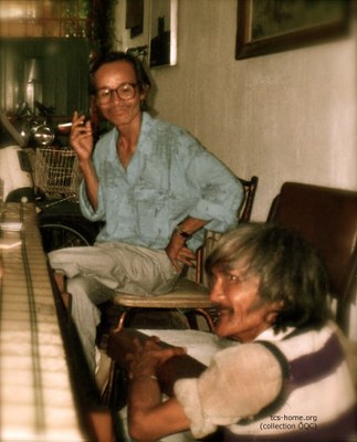 Anh Bùi Công Luân mới nhắc lại, tôi chẳng bao giờ vào trong nhà, chỉ đứng ngoài vườn nói chuyện, hay tới là chở Bùi Giáng đi ngay, trên chiếc velo solex của tôi. Đôi lần chúng tôi đi len lỏi qua các ngõ trong, từ đó qua ngôi nhà Nhạc Dế tôi ở với một người bạn, phía sau Viện Đại Học Vạn Hạnh. Nhưng ấn tượng chất ngất không ở đây, mà ở căn gác trong khu Bàn Cờ của Bùi Giáng. Anh ăn nằm giữa những hàng sách. Chỗ ngủ, ngay trên sàn gỗ, lọt trong các hàng sách, mà nếu trí nhớ không sai lầm, các góc mùng của anh níu vào các đống sách. Anh từng viết thư cho văn hào Albert Camus, trước khi ông này tử nạn xe hơi vào năm 1960; và từng được Camus gửi tặng sách. Những cuốn sách quí như thế, hình như có cả sách của Martin Heidegger (mất năm 76) và Jean-Paul Satre (mất 80) đề tặng nữa, và các bản thảo dở dang của anh, đều cháy thành tro trong vụ hỏa hoạn vào năm 1968.
