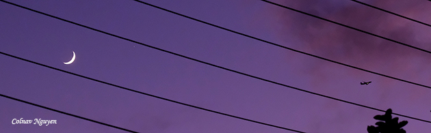 Trăng và máy bay ngoảnh mặt chia tay. The moon and the plane turned their backs to each other.