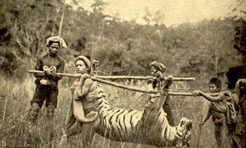 Sơn Nam cũng bổ sung: “vì còn dấu vết mê tín cổ xưa, đồng bào ta ít chịu tổ chức săn cọp; khi nào gặp những con có nợ máu thì huy động cả xóm đi ví khai hoặc bẫy hầm. Nhà nước khuyến khích giết cọp nhưng hương chức hội tề chỉ làm lấy lệ”. (Ghi chú: “Nhà nước” đây là chính quyền Pháp thuộc khi đó).