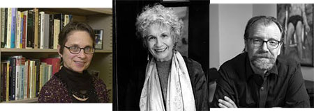 Ba nhà văn, từ trái, Lydia Davis (Mỹ), Alice Munro (Canada), và George Saunders (Mỹ). (Hình: thân tri)