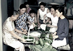 Con cháu ở phương xa đã tề tựu đông đủ, quây quần bên ông bà, cha mẹ để chuẩn bị nếp, đậu xanh, thịt mỡ, lá chuối để gói bánh tét. Nhà nào siêng năng, còn xay bột mang đến lò, tráng bánh.