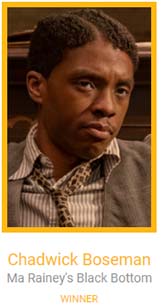 Chadwick Boseman, ngườivừa qua đời vì bệnh ung thư hồi tháng Tám, giành được giải Best Actor, nam diễn viên xuất sắc nhất trong một phim thể loại bi kịch (drama) “Ma Rainey’s Black Bottom.”