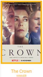 Về lãnh vực truyền hình, “The Crown” lấy về được bốn giải, gồm Best TV Drama, Best Actor (dành cho Josh O’Connor) và Best Actress (Emma Corrin), Best Supporting Actress (Gillian Anderson).