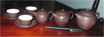 Bình trà: Cái bình nào cũng pha trà được cả. Bình lớn, bình bé, bình bằng sứ, bình bằng đất nung hay bình cà phê cũng OK. Này, này Chú, chú mày nói gì mà ba phải vậy? Dạ thưa anh, đó là nói theo kiểu nhà Phật, dùng phương tiện ẩn dụ —tam thừa rồi nhất thừa (các Đại Đức NTT, Đại Đức TMC hay Cư Sĩ Tâm Nguyên Khương NTT chắc không trách cứ tôi còn mê muội nên không nói đúng danh từ Phật pháp nghe!) để cho các bạn chưa vào “trường” trà thì vào cái đã, vào xong trong “trường” thì sẽ tính chuyện khác. Nhưng nếu có thể mua một bình trà thì nên mua loại bằng đất nung thứ bằng đất sét Nghi Hưng (Yixing) màu gan gà, nên mua thứ làm ở Đài Loan và hỏi tiệm bán bình mua loại nhỏ vừa dùng cho “song ẩm” (Hai người uống: không lẽ uống một mình, mà không mời người bạn đời của mình share?), Ngoài ra còn có loại bình nhỏ nhất, tiếng Tàu gọi là bình “độc ẩm”, còn bình lớn hơn nữa là bình “quần ẩm” dùng cho khoảng bốn hay năm người, quý bạn có mua thêm thì tốt thôi, vì có ngày sẽ dùng đến. Chắc có bạn sẽ hỏi vậy chứ nhiều người cùng uống thì dùng bình nào? Thật ra thì khi nào uống trà, ta chỉ uống hoặc một mình, hai người hay đông nhất là chung với bốn năm người mà thôi. Rượu thì cho đông người, chứ trà thì chỉ giới hạn mà thôi. Ngoài ra còn một chữ “ngưu ẩm” nữa thì ta không nên mắc phải như câu “trà Tàu một ngụm v.v..”