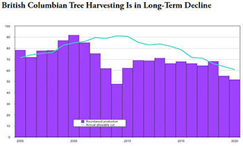 The provincial government has curtailed allowable timber production by a third since 2009, according to Fastmarkets. It has lost 2.5 billion board feet of annual production capacity since 2019, enough to shift prices in a North American market of 70 billion annual board feet, Jalbert said. In the past two years, about 30 sawmills have closed in British Columbia. Other factors in 2019 made the local industry’s crash especially sharp: A sluggish housing market and American import duties helped suppress demand too.