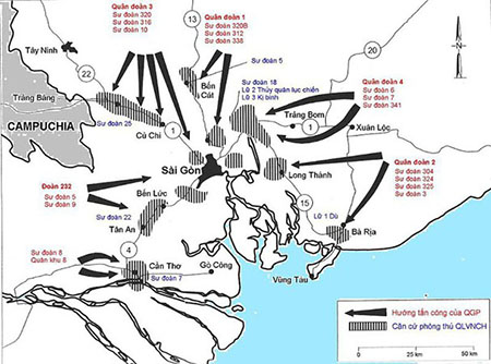 Ở mặt trận tây bắc Sài Gòn, Quân Đoàn 3 CSBV cũng chuẩn bị hành động. Để ngăn không cho quân NV từ Tây Ninh rút về Sài Gòn, SĐ 316 sẽ cắt Liên Tỉnh Lộ 22, đồng thời cũng tấn công vào quận lỵ Trảng Bàng quan trọng nằm trên QL 1. Một khi 316 lấy xong Trảng Bàng, SĐ 320 sẽ tấn công vào bộ tư lệnh SĐ 25 NV tại Đồng Dù, gần Củ Chi. Với SĐ 25 bị chôn chân, Trung Đoàn Đặc Công 198 sẽ len lách qua hàng rào phòng thủ của quân Nam Việt để chiếm hai cây cầu quan trọng gần Tân Sơn Nhứt, đó là Cầu Bông trên QL 1 và Cầu Sang trên TL 15. QL 1 và TL 15 là những con đường duy nhất băng qua những cánh đồng lúa chạy vào Sài Gòn. Sau khi chiếm được những cây cầu nầy, SĐ 10 sẽ thực hiện cuộc xung kích đánh thọc sâu theo hai con đường nầy để chiếm lấy Tân Sơn Nhứt và Bộ Tổng Tham Mưu QLVNCH.