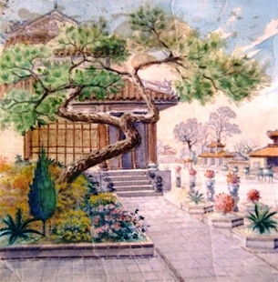 Bức tranh cho thấy tất cả đều đã được trùng tu chỉnh chu từ chậu kiểng đến các công trình kiến trúc.
