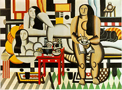 Sau vị trí của Juan Gris chính là Fernand Leger (1881-1955), người đã phát huy một lối vẽ chồng xếp các bình diện lên nhau một cách có chủ ý giống như Cézanne đã vẽ. Ông tham gia vào phái Lập thể từ 1911 thông qua triển lãm “Salon mùa thu” cùng năm. Tuy nhiên Chiến tranh Thế giới thứ nhất đã để lại cho ông nhiều hồi ức cay đắng, khiến ông rời bỏ chủ nghĩa Lập thể chính thống và gắn bó với những sản phẩm công nghiệp. Hình khối của đối tượng, được ông tổ chức khéo léo thành hình trụ, hình côn nổi bật và có màu sắc thuần khiết. Tạo hình có thể to, thô và trái với tỉ lệ thông thường, nhưng lại khiến cho bức tranh tràn đầy nhựa sống và trẻ trung của thời đại công nghiệp mới.