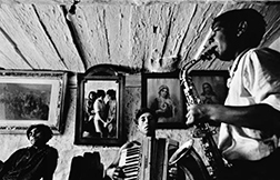 “It was perfect for this picture, for instance. It was such a small space. It wasn’t much bigger than this [shows small space with hands]. I was sitting there, with all these people sitting around me—when I made portraits I only featured one person. Here they all entered the picture.”