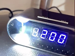 “This alarm clock is mirrored,” he said, ‘but if we shine a bright light at it, we can see through the glass and see there is a camera there.