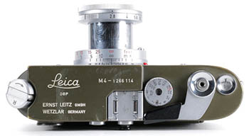 A Leica M4 from the former inventory of the German Federal Armed Forces (Bundeswehr) in NATO with olive green paint finish from 1968 sold for 450,000 euros (about 521,000).