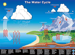 Hơi nước bốc lên từ bề mặt đại dương và được những cơn gió mang tới nơi khác. Khi hơi nước gặp được khối không khí lạnh hơn ở trên cao, nó ngưng tụ lại (chuyển từ thể khí sang thể lỏng) và rơi xuống mặt đất tạo thành mưa. Mưa trên đất liền được quy lại bởi các dòng sông, suối và cuối cùng lại chảy ra biển. Và chu trình cứ thế lại diễn ra liên tục. Chính vì lý do đó, nước tại các con sông trên đất liền không có vị mặn, nhưng khi chảy ra biển lại tiếp tục hòa tan lượng muối vẫn còn dưới biển và tiếp tục có vị mặn. Trên thực tế, kể từ khi những cơn mưa đầu tiên rơi xuống, biển đã dần trở nên mặn hơn.