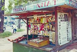 Ðến đây, xin đề cập tỉ mỉ thêm đôi điều chung quanh nghề bán báo năm xưa. Trước hết, nói về cái sạp để bày báo. Cho đến lúc ba tôi ra nghề, những sạp bày báo bán ở khắp nơi đều do người bán tự đóng ráp lấy. Do vậy, lớn nhỏ không đồng đều; kiểu dáng cũng không giống nhau. Ðiều chung nhất là không vững, dễ sập đổ, nhất là khi có mưa to gió lớn hoặc ai đó vô tình đụng mạnh hay ngã lên sạp làm sách báo bay lả tả, văng tứ tung. Sạp báo của ba tôi cũng đã hơn một lần bị tai nạn dở khóc dở cười như vậy. Thêm một điều bất tiện là, hầu hết các sạp đều được chế như khung một chiếc ghế bố xếp, nhưng rộng một chút ở bề ngang, hẹp một chút ở chiều dài. Ðầu ngày, chỉ cần mở khung xếp ra, đặt lên một mặt ván gỗ nhẹ vừa vặn kích thước, thêm bốn thanh gỗ dài khoảng gần hai mét cặp vào bốn góc sạp theo thế đứng cho sạp thêm vững. Vậy là xong. Ðể che nắng, che mưa, bốn đầu thanh gỗ chính là bốn điểm móc để một tấm bạt vãi dầu hoặc áo mưa cài lên. Do vậy, mỗi chiều tối chấm dứt một ngày buôn bán, khung sạp có thể dựng lên rồi cột lại để dựa tại chỗ đâu đó. Nhưng báo chí còn lại, đặc biệt là các nguyệt san, bán nguyệt san và báo tuần, vốn rất nhiều, người bán phải chở hết về nhà, rồi sáng hôm sau lại phải mang ra. Vừa tốn sức vừa tốn tiền xe, thường là xích lô hai lượt đi, về trong một ngày. Nhận thấy điều trở ngại, nhiều bất tiện cho người bán, nhà tổng phát hành Thống Nhất lúc ấy đã thực hiện một chương trình cung cấp đồng loạt cho hết thảy những người bán báo trong toàn vùng Sài Gòn Gia Ðịnh, mỗi nơi một sạp báo “hiện đại”. Hình dáng sạp báo này là một hình khối chữ nhật, mặt trên hơi dốc về phía ngoài, nơi khách ghé mua báo với kích thước khoảng 1 mét rưỡi nhân 1 mét hai tấc. Mặt đáy của sạp cao hơn mặt đất chừng một tấc, bằng kim loại. Các mặt còn lại đều bằng gỗ chế biến lắp ghép. Cả khối sạp được tháp vào hai khung ống sắt rắn chắc mà vòng lượn xuống mặt đất là chân sạp, vòng lượn lên trên thì được lắp vào một mái che bằng vật liệu nhựa cứng nhẹ. Ðặc biệt, ngay chính giữa mái trước, có lắp đặt một tấm bảng kim loại sơn trắng có kẻ hai chữ Thống Nhất màu đỏ. Mặt sau khối sạp, phía người bán, có trổ một cánh cửa nhỏ có khóa để cất giữ mọi vật dụng và sách báo để lại qua đêm. Toàn bộ khung sắt được sơn màu xanh lục. Phần khối sạp màu trắng xám.