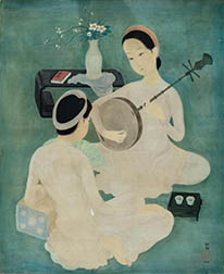 Cái tên triệu đô thứ 2 cùng phiên đấu giá là bức tranh lụa Chơi Nguyệt Cầm của danh họa Mai Trung Thứ (hay còn gọi là Mai Thứ).javascript:if(typeof(admSspPageRg)!=’undefined’){admSspPageRg.draw(3628);}else{parent.admSspPageRg.draw(3628);}