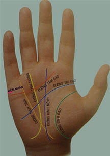 – Đường sinh đạo có những làn nhỏ cắt ngang ngó qua gò Thái Âm: bệnh cảm đã nặng, thận đau và tử cung và phổi cũng vậy. Khi những lằn ấy xuất hiện dưới ngón tay cái trên gò Kim tinh thì nếu là đàn bà sẽ bị băng huyết.