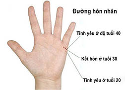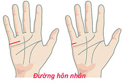 – Đường hôn nhân dài chạy lên ngón út là tốt, nếu vào kẽ giữa ngón út và ngón đeo nhẫn (Thái dương) thì trước tốt sau xấu.