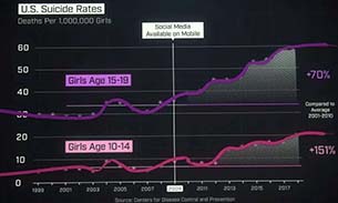 Theo Jonathan Haidt, Giáo sư tâm lý của trường ĐH New York, kể từ năm 2009 – thời điểm mạng xã hội trở nên phổ biến, số lượng trẻ em gái nhập viện vì tự làm hại bản thân từ 15-19 tuổi gia tăng 62%, từ 10-14 tuổi gia tăng 189% so với thập kỷ trước. Trong khi đó số lượng trẻ em gái từ 15-19 tuổi tự tử gia tăng 70% và số trẻ gái 10-14 tuổi tự tử gia tăng 151% so với 10 năm trước.