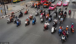 Lấy ví dụ Thái Lan, quốc gia có tỷ lệ sử dụng xe máy trên đầu người cao nhất. Có 87% hộ gia đình sở hữu ít nhất một chiếc xe máy, thường là dòng xe tay ga có sàn để chân mà người lái có thể đặt chân ngay phía trước.