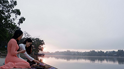 Chúng tôi ngồi thưởng trà bên sông sau nghi lễ mà Quỳnh thực hiện. Chỉ ít phút thôi, mặt trời đã biến mất. Sương mù từ đâu đó ùa tới một cách đột ngột khiến tất cả ngồi lặng đi, kinh ngạc. Quỳnh thốt lên: “Chị nhìn kìa, sương đang bò về phía mình”. Đúng như Quỳnh nói, sương như khói, lăn tăn cuộn tròn và đang lăn từ bờ Nam sang phía chúng tôi ngồi. Mặt sông biến mất trong phút chốc. Tất cả chỉ là một khối đặc quánh, mờ mịt, kỳ ảo như không thể nào có thật.