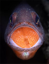 Một con cá gobble-guts đực ngậm trứng trong miệng.
