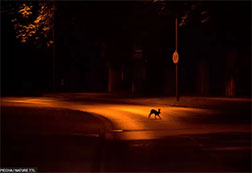 Ban ngày, con phố này ở ngoại thành Kassel, Đức, đông người qua lại – nhưng về đêm, khu phố thuộc về các con vật.