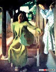 Tô Ngọc Vân (1906-1954) là bậc thầy trong tranh sơn dầu Việt Nam. Ông tin tưởng chất liệu mới này có thể biểu đạt được tâm hồn người Việt Nam và có thể định hình được tương lai hội họa Việt Nam. Ông bắt đầu khai thác các đề tài về phụ nữ, cuộc sống hằng ngày, và phong cảnh trong các bức tranh của mình. Hiện thực luôn là nguồn cảm hứng chủ đạo của ông. Tô Ngọc Vân chú trọng đến hình khối, nhưng hơn thế ông còn chú ý tới màu sắc.