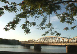 Có bốn chiếc cầu bắc ngang qua sông Hương : cầu thứ nhất có xe lửa chạy qua cồn Giả Viên được gọi là cầu Bạch Hổ (Dịp cầu Bạch Hổ mấy bóng ma Biến mất vì nghe giục tiếng gà) (9) , vừa qua có thêm một cầu thứ hai đường bộ Bạch Hổ; cầu thứ ba xưa nhất có từ thời vua Thành Thái (1879-1954), lần lượt mang những tên Thành Thái, Clémenceau, Nguyễn Hoàng nhưng tên thông dụng luôn vẫn là cầu Trường Tiền, vì gần công trường đúc tiền, hai lần bị hư nặng nhân trận bảo năm Thìn 1904 và trong thời kỳ chiến tranh nay đã được sửa lại ; và cầu thứ tư nằm giữa hai cầu Bạch Hổ và Trường Tiền được xây dựng thời Mỹ là cầu Phú Xuân, chắc chắn để chịu đựng được mọi xe cộ nhưng không yêu kiều, duyên dáng bằng cầu Trường Tiền.