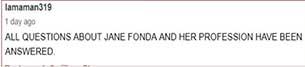 Bởi vậy cho nên, khi nghe Hanoi J tuyên bố trắng trợn là mình đi vì chỉ để lấy tiên để trả bills và chăm lo cho con cháu. Mọi người Mỹ, các báo chí truyền thông Mỹ đã chạy tít lớn về câu nói trắng trợn này. Các cựu quân nhân Mỹ càng không thấy có lý do gì để xóa cái hỗn danh Hanoi Jane để trở lại là Jane Fonda, điều mà Hanoi J rất lấy làm xấu hổ.
