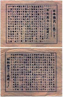Người Mỹ không chiến đấu chống lại nhân dân Nhật Bản, mà chiến đấu chống lại các thế lực quân sự đang sử dụng nhân dân Nhật Bản. Nền hòa bình mà Mỹ mang lại sẽ giải thoát cho người dân như các bạn đang phải sống trong sự áp bức của quân đội Nhật và đồng thời cũng có ý nghĩa mang đến một Nhật Bản mới tốt đẹp hơn.