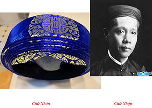 Ở vòng dưới cùng của cái khăn đóng có đính theo 3 chữ: Nhất, Nhân và Nhập. Chữ Nhất dành cho vua, chúa. Chúng ta nhìn kỹ, khăn đóng của vua Khải Định, hoàng đế Bảo Đại đều có chữ nhất.