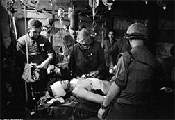 Chợt ngoài bãi đáp có tiếng động cơ của trực thăng tản thương. Hai điều dưỡng viên chạy ra khiêng chiếc cáng, trên đó là một thương binh băng kín nửa người phần dưới. Theo sau chiếc cáng là một sĩ quan Mỹ và một sĩ quan Việt-Nam. Người sĩ quan Việt-Nam đó là Đại-Úy Phạm Văn Tư Khóa 19 Võ Bị, tôi quen biết.
