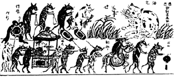Nửa trên của tấm tranh chính là minh hoạ của phần đầu Đám cưới chuột này.