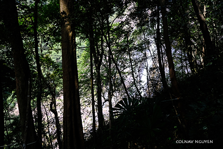 Ngoái nhìn lại đỉnh thác nơi mình vừa đi bộ xuống. Hu hu, lát nữa phải leo ngược trở lên với cái bụng đói. Những điều nghĩ đến mà đau đớn lòng.