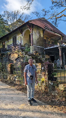 Morin Bạch Mã Hotel, một trong những ngôi biệt thự bị bỏ hoang phế nằm rải rác khắp trên Bạch Mã. Thời gian : 4:50 pm. Hoàn toàn tơi tả sau một ngày leo trèo, cuốc bộ trên 17 ngàn bước. Đây là lúc sắp bước lên xe về lại Huế. (Ảnh : Thế Quý)