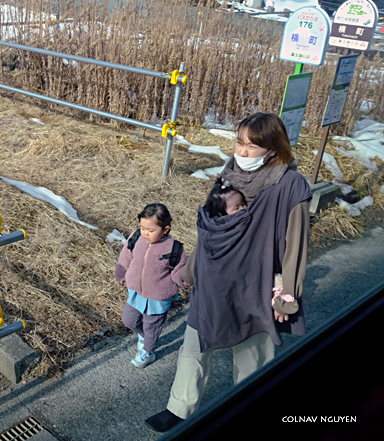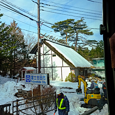 7:38 am. Rời khách sạn, xe buýt đưa chúng tôi đến làng cổ Oshino Hakkai, nơi chỉ cách xa hơn 20 phút.