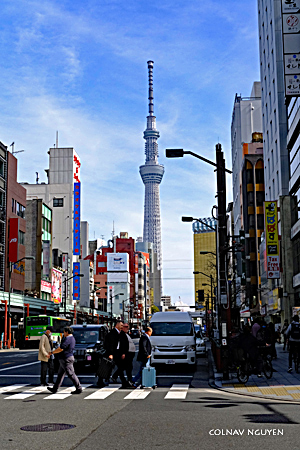 Từ chỗ đứng chờ có thể nhìn thấy tháp Tokyo Skytree, một trong những biểu tượng của thủ đô Tokyo.