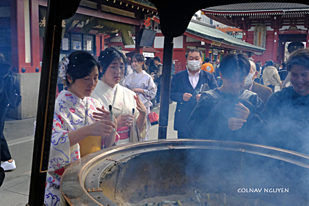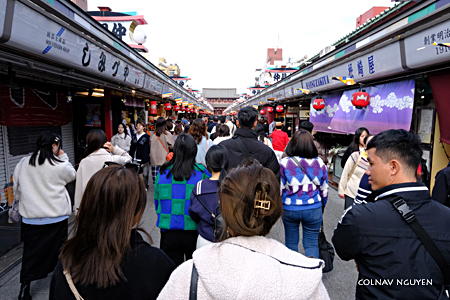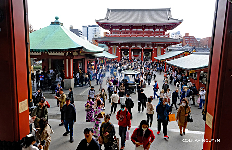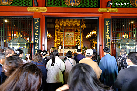 Sau buổi ăn trưa là cuộc viếng thăm Senso-ji, ngôi chùa cổ thờ Quán Thế Âm Bồ Tát, nổi tiếng nhất ở Tokyo. Chùa Senso-ji được xem là địa điểm tôn giáo được nhiều người viếng thăm nhất thế giới với trên 30 triệu người hằng năm. Chiều dài lịch sử của chùa có đến cả 1.400 năm.