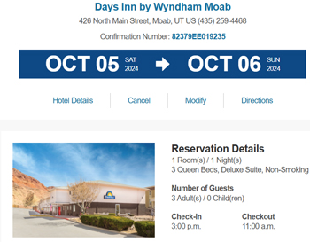 Đặc biệt tại Moab, tôi tìm được khách sạn Days Inn có phòng 3 giường queen, quá vui khi cả 3 ngủ chung một phòng và ai lại giường nấy.