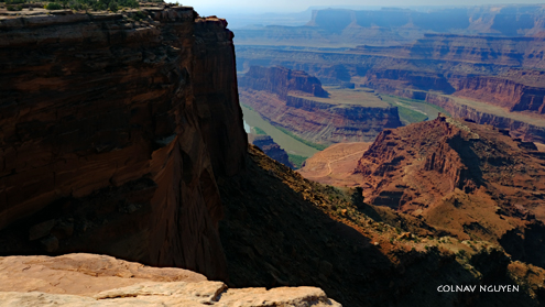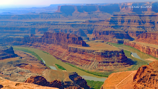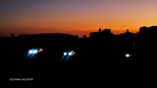 Từ Moab chúng tôi tính dành hết buổi sáng cho Canyonlands NP trước khi chạy xuống Monument Valley cho kịp lúc hoàng hôn. Nhưng mưu sự bất thành vì đoàn xe rồng rắn trước cổng vào công viên nầy dài quá dài nên đành chuyển sang viếng Dead Horses Point State Park. Đến gần trưa thì chúng tôi lên xe theo Route 191 xuôi nam và đến Monument Valley thì vừa gần 4 giờ. Lân la đến 6 rưởi thì chạy tiếp đến thị trấn Page ngủ qua đêm. Ngày hôm nay lái được gần 300 dặm, và thời gian ngồi trên xe là 5 đến 6 tiếng.