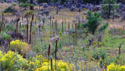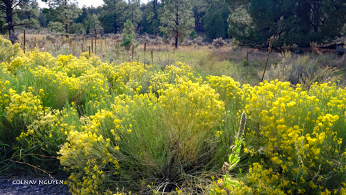 Hoa dại mọc bên vệ đường. Sau mấy ngày dong ruổi qua bao dặm đường qua những vùng sa mạc khô cằn, nay trên đoạn Route 64 từ Grand Canyon chạy về thị trấn Williams, tôi chấm đây là đoạn đẹp nhất, tươi mát nhất. 3:32 pm.