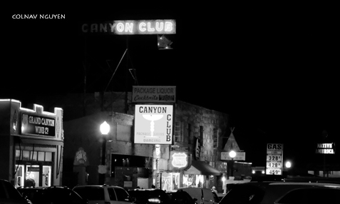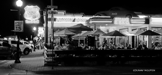 Hàng quán về đêm dọc theo con đường lịch sử của nước Mỹ, the historical Route 66, chạy từ Santa Monica, California lên đến Chicago, tiểu bang Illinois, ngang qua thị trấn Williams này.