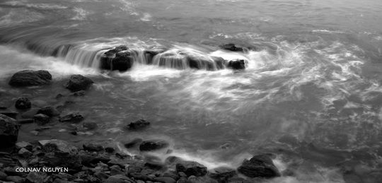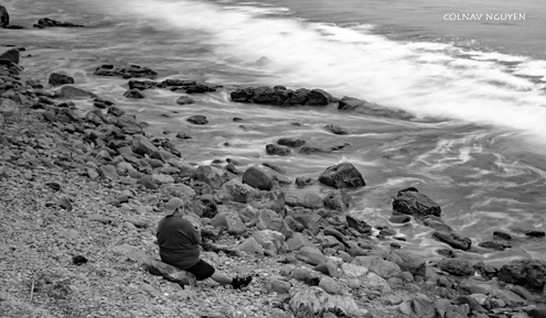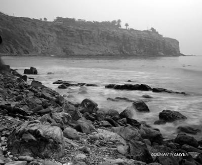 Rất tiếc biển sáng hôm nay mù sương vào tận đất liền, không còn nhìn thấy vùng biển bao la xanh ngát nối với bầu trời, che mất những con tàu container vào ra hai hải cảng hàng đầu của Mỹ là Los Angeles và Long Beach Harbor. Thôi thì nhìn xa không được thì nhìn gần, đã lái đến đây rồi đi dốc xuống đến sát biển chẳng lẽ về tay không? Kia là những cơn sóng nhè nhẹ vỗ vào bờ lên những khối đá đen, một cậu thanh niên ngồi trên bãi đá nhìn ra phía biển, nghe tiếng nước tràn vào rồi rút ra xen qua các phiến đá. Mờ mờ phía xa là vách đá dựng đứng, khiến liên tưởng đến cảnh quân đồng minh đổ bộ lên bờ biển Normandy của Pháp hồi Thế chiến Hai.