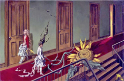Tanning had been to Sedona for the first time in 1943 which was the same year she created one of her most famous paintings called Eine Kleine Nachtmusik. According to Tanning, the couple often talked about Mozart during this trip and the title references Mozart’s piece that goes by the same name. The artist described the sunflower in the painting as a symbol of all the things that youth has to face and to deal with.
