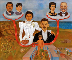 André Breton described Kahlo as a Surrealist and organized her first solo exhibition at the Julien Levy Gallery in New York in 1938. Her work was also part of the International Exhibition of Surrealism in Mexico City in 1940. Even though Kahlo’s work is often associated with Surrealism, she herself said that she never painted dreams, but her own reality. Her often autobiographical works discuss themes like identity and pain.