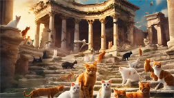 Thế là bất đắc dĩ, loài người phải chia sẻ một phần thành quả lao động ban ngày của mình cho lũ chuột. Cho đến khi những con mèo xuất hiện và đi loanh quanh khu định cư của loài người.