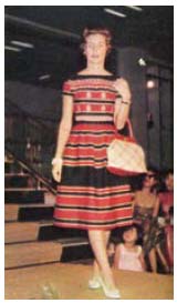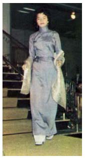 Hai trăm năm mươi khách đến xem, đa số là phụ nữ, một số người nước ngoài và quan chức nhà nước. Họ thích thú khi bà Đàm Thị Hiếu, phụ trách gian hàng lên phát biểu khai mạc trong trang phục nón quai thao, nón nhiễu hồng lồng áo the thâm, yếm thắm, thắt lưng màu, dây tích bạc, quần lãnh và guốc đen… Đó cũng là tiết mục biểu diễn đầu tiên. Sau đó là 44 kiểu trình diễn trang phục phụ nữ năm 1960-1961. Trang phục biểu diễn là đồ đi chơi, dạ hội, đi biển, thể thao… Người mẫu, trong đó có cả người nước ngoài, không ai thuộc giới biểu diễn chuyên nghiệp trừ Nghệ sĩ Kiều Chinh. Trước khi trình diễn trang phục đương đại, khán giả được xem các kiểu áo dài thông dụng của miền Bắc từ khoảng năm 1840 và 1900, trang phục của thôn nữ và trang phục của thiếu nữ miền Nam thông dụng khoảng thập niên 1930.